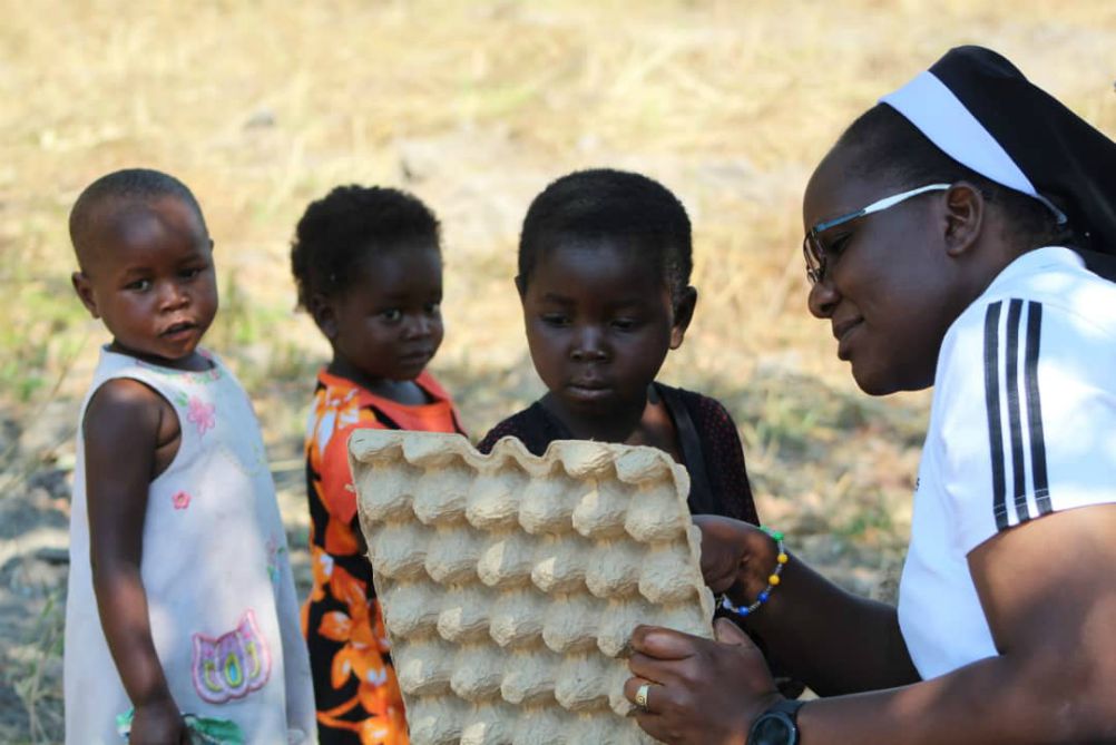 Sr. Astridah Banda, who is also a social worker, provides literary classes to children in rural Zambia who have not started formal school to encourage an interest in learning. (Provided photo)