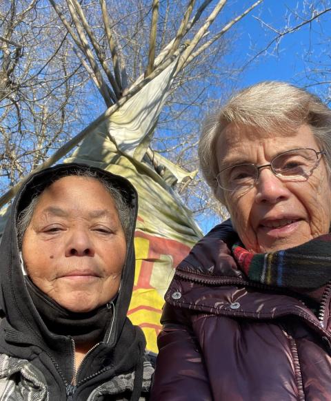 In the picture, Amityville Dominican Sister Margaret Galiardi delivered $900 in supermarket gift cards and cash to Rebecca Hill-Genia, the president of the Padoquohan Medicine Lodge, a non-profit dedicated to the Shinnecock Tribe. The funds will be used to help those struggling with food insecurity and adequate housing there.