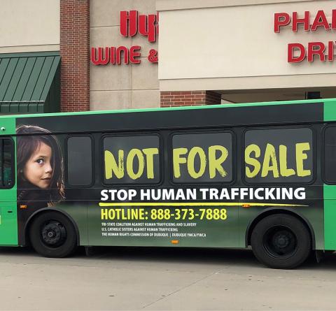 Women religious in the Dubuque, Iowa, area are the prime sponsors of a bus wrap featuring a photo of a young girl to drive home a growing reality: “Not for Sale: Stop Human Trafficking.”