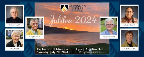 Please join us for a Jubilee Eucharistic Celebration on Saturday, July 20, 2024, at 1 pm. Our special liturgy will take place in Angelico Hall on the Dominican University campus with a reception to follow at the Sister’s Gathering Space across the street at 1520 Grand Avenue.