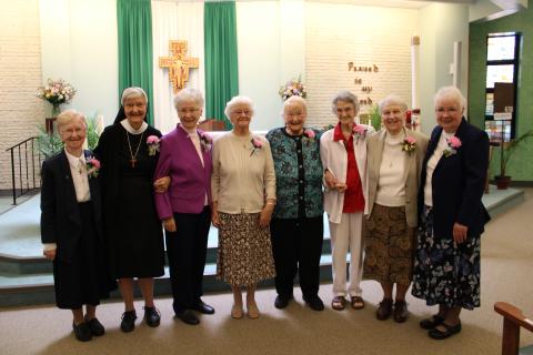 The Sisters of St. Francis of Philadelphia 2023 Jubilee Celebration was held the weekend of June 3-4, 2023. Jubilarians celebrating 50 and 70 years of religious profession gathered at Our Lady of Angels Convent in Aston, Pennsylvania, for a weekend of recalling memories and celebrating both the years past and the years to come. On Saturday afternoon, congregational leadership hosted a special Mass of Remembrance for members of the jubilee set who have died and an honorary dinner for all the jubilarians at Assisi House, our retirement residence in Aston. On Sunday morning both jubilarians and guests gathered in Our Lady of Angels Chapel for a joyous jubilee liturgy. Father Cyprian Rosen, OFM Cap., presided over the liturgy during which the jubilarians renewed their vows of chastity, poverty, and obedience—vows which they first professed 70 or 50 years ago. Following the liturgy both jubilarians and their guests gathered for a luncheon at Our Lady of Angels Convent.