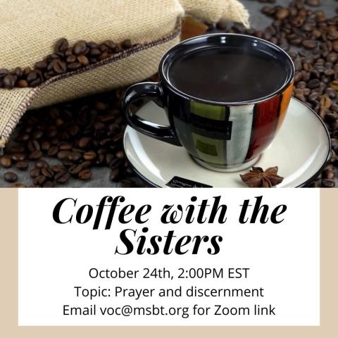Join us on Zoom for Coffee with the Missionary Servants of the Most Blessed Trinity! We will be discussing prayer and discernment. Are you discerning religious life? Connect with our Vocation Office for more support and learn about MSBT.