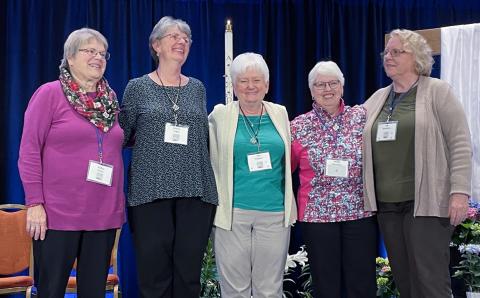 The election took place on Friday, April 21, 2023, at the conclusion of the congregation’s weeklong Chapter meeting in Chicago. The sisters elected are Sisters Kathy Brazda, CSJ (Chicago, IL), Marie Hogan, CSJ (Detroit, MI), Sue Torgersen, CSJ (Cottage Grove, MN), Helen Skormisley, CSJ (Fairmont, WV), and Pat Warbritton, CSJ (Kalamazoo, MI).