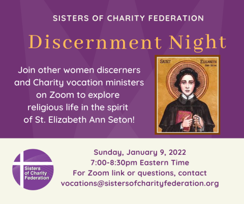Join other women discerners and Charity vocation ministers on Zoom to explore religious life in the spirit of Saint Elizabeth Ann Seton!