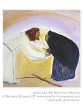 "Jesus would not look down on her," mused S. Barbara Schwarz. "They are meeting as human beings, person to person and that was important because Jesus, God, cares about us as persons. It is not so much how she looks or her cane that is on the ground, he wants to connect with her as a person."
