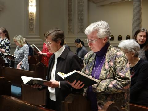 On Friday, November 15, 2019, Sister Carol Curtis made her final profession of vows to become an Ursuline Sister of Louisville during Mass in the Ursuline Motherhouse Chapel. Sister Carol had previously been a nun with the Discalced Carmelites in Louisville. She lived a cloistered life for 25 years, along with her fellow nuns behind the walls of their monastery—a life devoted to simplicity and prayer. Sister Carol was serving as prioress of the Carmelites when they made the decision in 2015 to move out of their monastery on Newburg Road and sell the building to the Archdiocese of Louisville.
