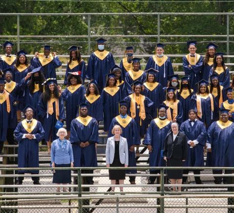 The Franciscan Missionaries of Our Lady are the religious sponsor for Cristo Rey Baton Rouge Franciscan High School high school, ensuring that it is Catholic in identity and mission, true to the religious charism of the congregation. Cristo Rey Baton Rouge began the 2019-2020 school year with 174 students in grades 9-12. In May, the Class of 2020 was the first graduating class in the history of the school. Students earned over $1.2 million toward their tuition this school year with the support and partnership of 48 Corporate Work Study Partners and Sponsors throughout the greater Baton Rouge, La area. This private, Catholic high school opened in August 2016 and in this learning environment, we educate young people of limited economic means to become men and women of faith, purpose and service. Forty-one students graduated the school year strong with 100 percent college acceptance. We are so proud of our students and will be praying for them as they begin their studies in the fall. Sr. Barbara Arceneaux, Regional Minister; Sr. Eileen Rowe and Sr. Helen Cahill attended the ceremony. Sr. Eileen gave the closing prayer. https://www.fmolsisters.com https://www.cristoreybr.org/