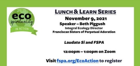 The “Laudato Si’ and FSPA” presentation is free and open to all. Registration is required at fspa.org/ecoaction. All registered guests will receive the Zoom link.