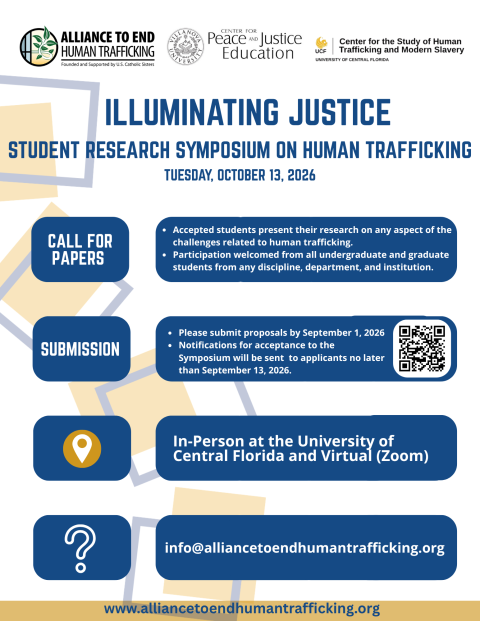 Hosted by the Alliance to End Human Trafficking in collaboration with Villanova University’s Center for Peace and Justice Education and the University of Central Florida’s Center for the Study of Human Trafficking and Modern Slavery, the symposium creates space for informed dialogue and cross-disciplinary exchange.