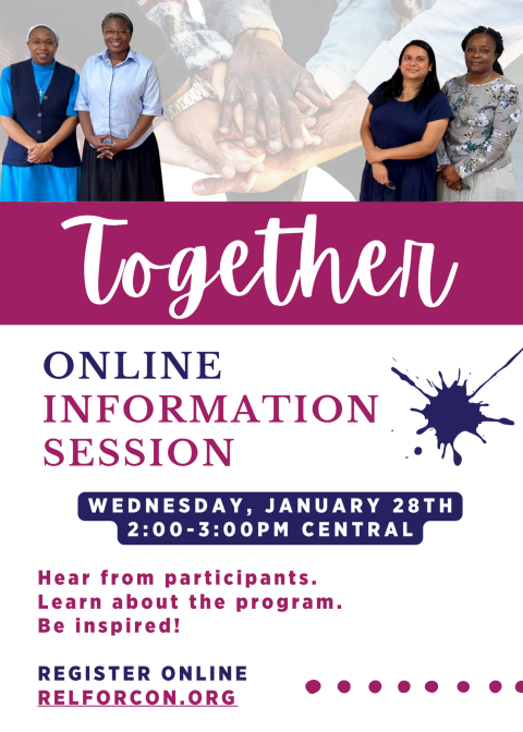 Together is an inter-congregational community of vowed religious who are studying at Catholic Theological Union. Students live together in community, share prayer and meals, and encourage one another in their studies. If you or one of your community members are thinking about furthering your theological education and would like to learn more about Together, join us for the upcoming virtual information session.