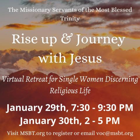 The Missionary Servants of the Most Blessed Trinity will be hosting an online discernment retreat, January 29th and 30th for single women, ages 18+ that are considering religious life. Join MSBT sisters in prayer, reflection and hear MSBT sistres share their stories on mission.