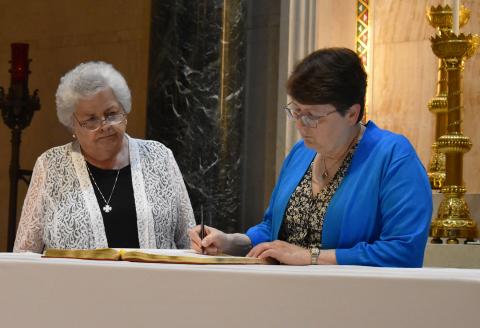 Abbot James Albers of St. Benedict’s Abbey, Atchison, presided at the Mass. Sister Esther Fangman, prioress of Mount St. Scholastica, accepted Sister Jennifer’s vows on behalf of the community. More than six dozen sisters present welcomed Sister Jennifer with promises to support her in her vocation, and special blessings.