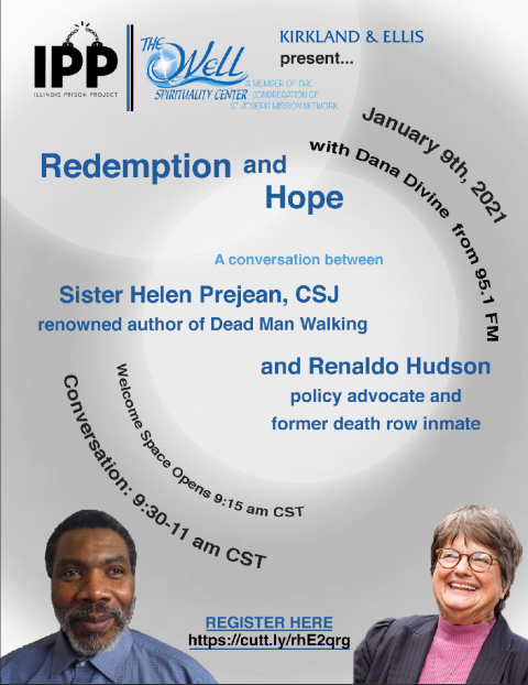 The Well Spirituality Center and the Illinois Prison Project are delighted to present this virtual conversation about Redemption and Hope, moderated by Dana Divine of 95.1 F.M. Our conversation will take place on Saturday, January 9th.