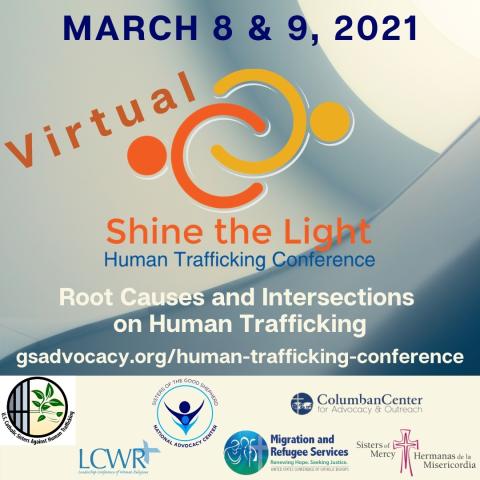 The National Advocacy Center of the Sisters of the Good Shepherd (NAC) invites you to its VIRTUAL 2021 Shine the Light Human Trafficking Conference: Root Causes and Intersections on Human Trafficking. The conference, which is free of charge, will be held over two afternoons, March 8 (12noon to 3:00 pm EST), and March 9 (12noon to 1:30 pm EST). We also are organizing a Call to Action Day on Trafficking for March 9.