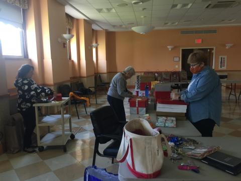 After shopping for the necessary items, Cathy, Mary Lou, Maureen, and Sr. Mary Jo Lynch, OP, wrapped and tagged gifts then delivered them to the Sparkill Motherhouse for final distribution.