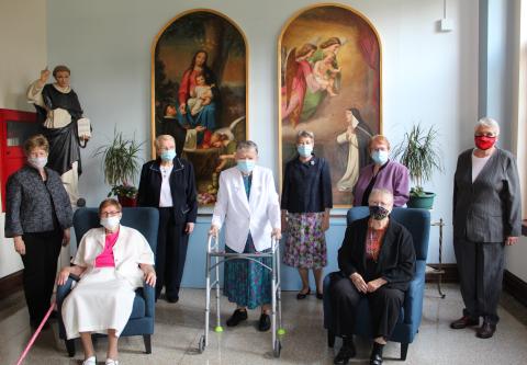 Though not as crowded as most celebrations, and even with face masks and distance between attendees, the day was full of great joy as Sr. Madeline McGill celebrated her 70th year as a Sister of Saint Dominic. Along with Sr. Madeline, Sisters Bernadette Burke, Cecelia (Cely) Byrnes, Maureen Gibbons, Alice Kirk, Mary Malone, Joan Smith, and Bridget Mary Troy, all celebrated their 60th anniversary of entering the congregation.