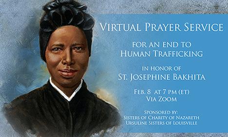 Monday, February 8th marks the feast day of St. Josephine Bakhita and the International Day of Prayer to End Human Trafficking. The Ursuline Sisters of Louisville are collaborating with the Sisters of Charity of Nazareth to present a virtual prayer service. It will be held at 7:00 pm ET, Monday, February 8th, on Zoom. All are welcome to join this 30-40 minute service.