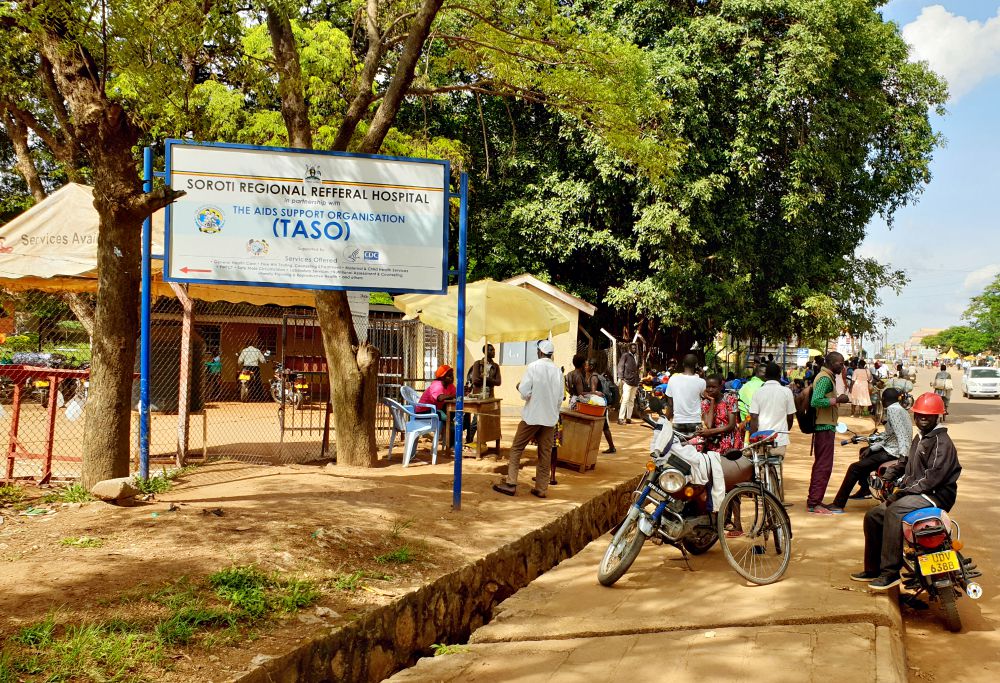 People wait outside at Soroti Regional Referral Hospital in Soroti, Uganda. (Gerald Matembu)