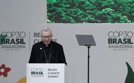 Cardinal Pietro Parolin, Vatican secretary of state, reads a message from Pope Leo XIV to the Leaders Summit Nov. 7, 2025, during COP30, the U.N. Climate Change Conference, in Belem, Brazil. (CNS/COP30/Rafa Pereira)