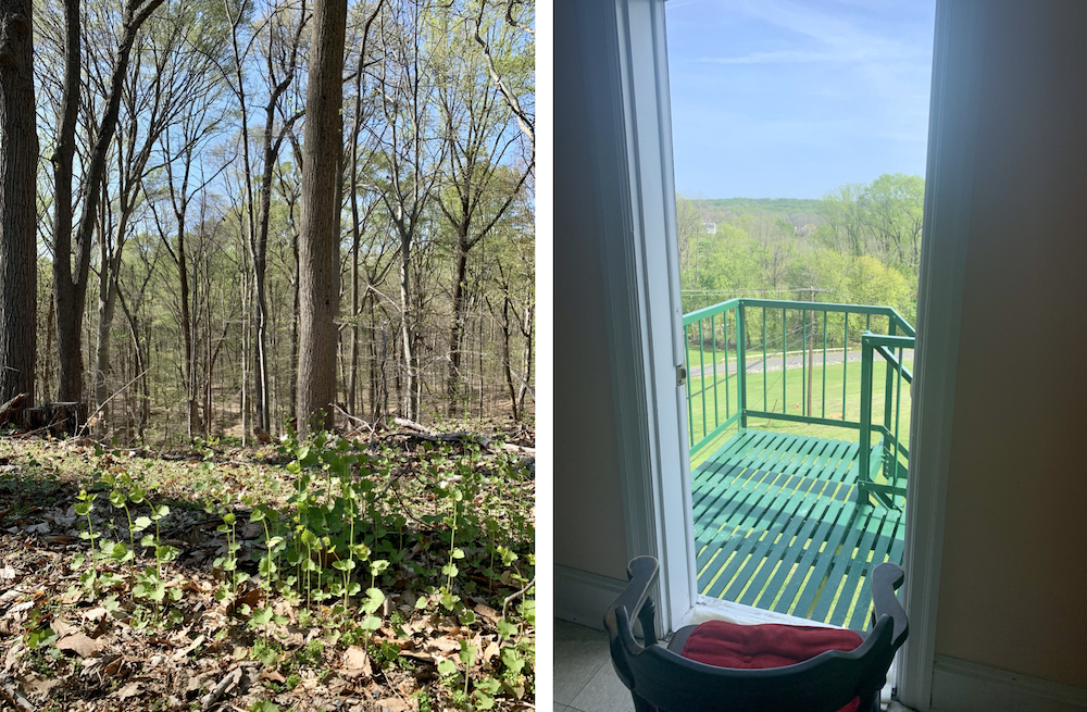 Left: All of my senses were engaged while journeying along the trails of Collier with the hiking club. I loved seeing all the green growing on the forest floor and the trees beginning to bloom. Right: I relish moments when I can reflect on the movements, lessons and growth from this year. I took time the other day to look out over the Collier property and enjoy a cup of tea while thinking about the many experiences this year. (Maddie Thompson)