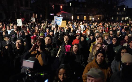 Sr. Assumpta Nabawanuka, center, and two nurses visit patients admitted at St. Francis Hospital Nsambya in Kampala, Uganda's capital. Nabawanuka, a member of the Sisters of the Immaculate Heart of Mary Reparatrix – Ggogonya, was among the team selected by the government of Uganda to deal with COVID-19 when the first case was confirmed on March 21, 2020. (GSR photo/Doreen Ajiambo)
