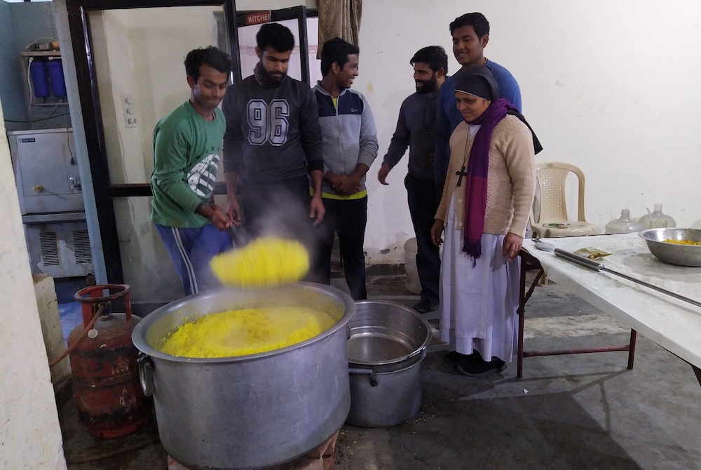 During the lockdown, our cathedral hall was converted into a community kitchen, and everyone — the bishop, priests, seminarians, sisters and laypeople — cooked and distributed food packets. The seminarians now do the cooking on Saturdays. We begin the cooking at 9 a.m., and by noon, the driver and I go for distribution.