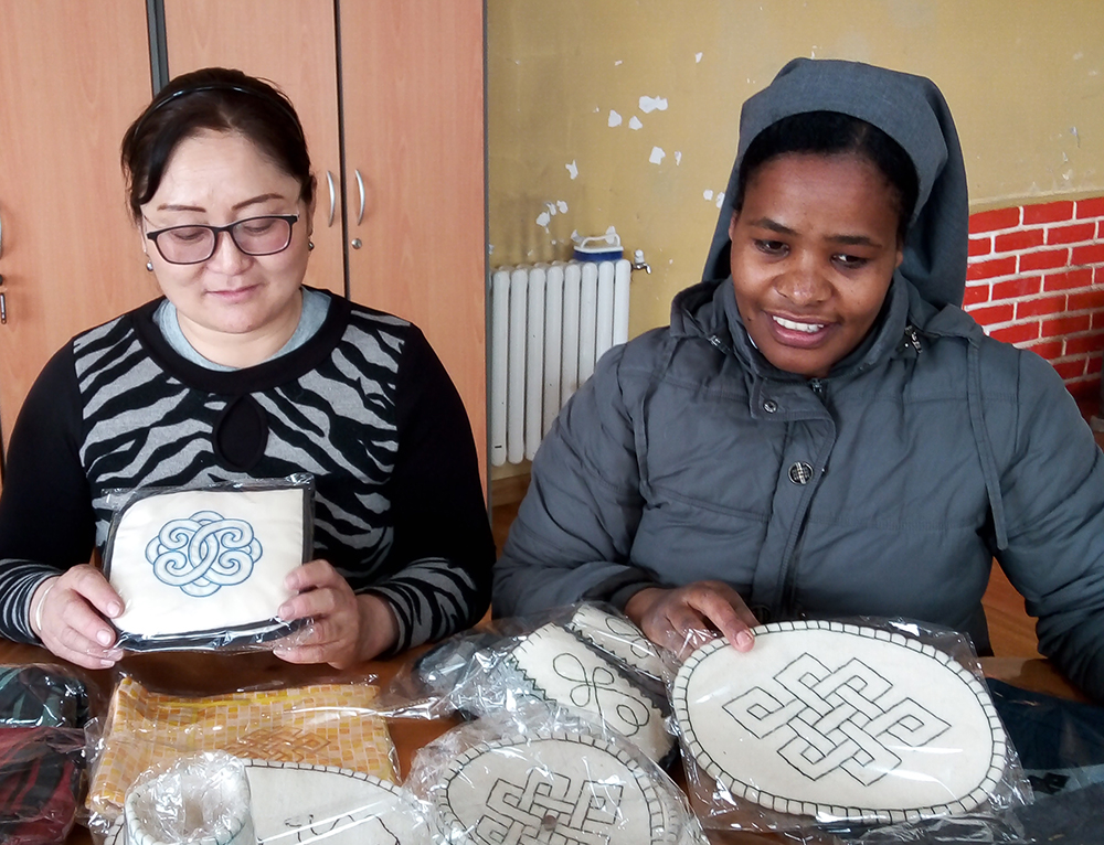 Consolata Missionary Sr. Tireza Gabriel Usamo, right, at a church-run handicrafts center for women in Arvaikheer, Mongolia (Courtesy of Tireza Gabriel Usamo)