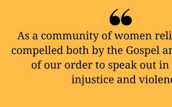 "As a community of women religious, we are compelled both by the Gospel and the charism of our order to speak out in the face of injustice and violence," McDermott said. "The Sisters of Mercy were founded out of a deep concern for persons, especially women and children, who are poor and marginalized.