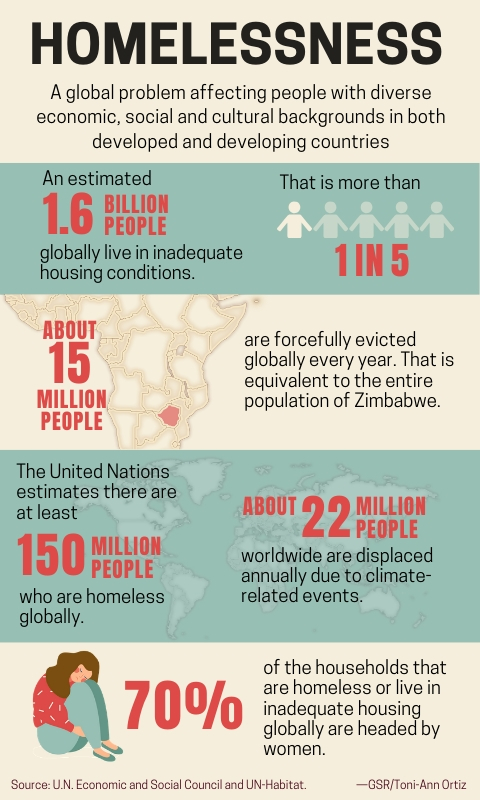 The issue is starting to attract international attention, too: The United Nations estimates that 1.6 billion people live in inadequate housing worldwide, and 15 million people are forcefully evicted each year. The challenges of affordable housing and homelessness will take center stage at the Feb. 10-19 meetings of the United Nations' Commission for Social Development, one of the U.N.'s main bodies dealing with development issues.