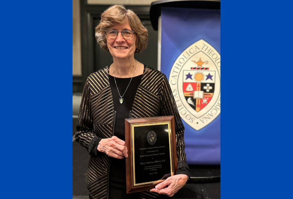 Theologian Sr. Mary Catherine Hilkert, a member of the Dominican Sisters of Peace and professor of theology at the University of Notre Dame, has won the Catholic Theological Society of America's highest mark of achievement, the John Courtney Murray Award.