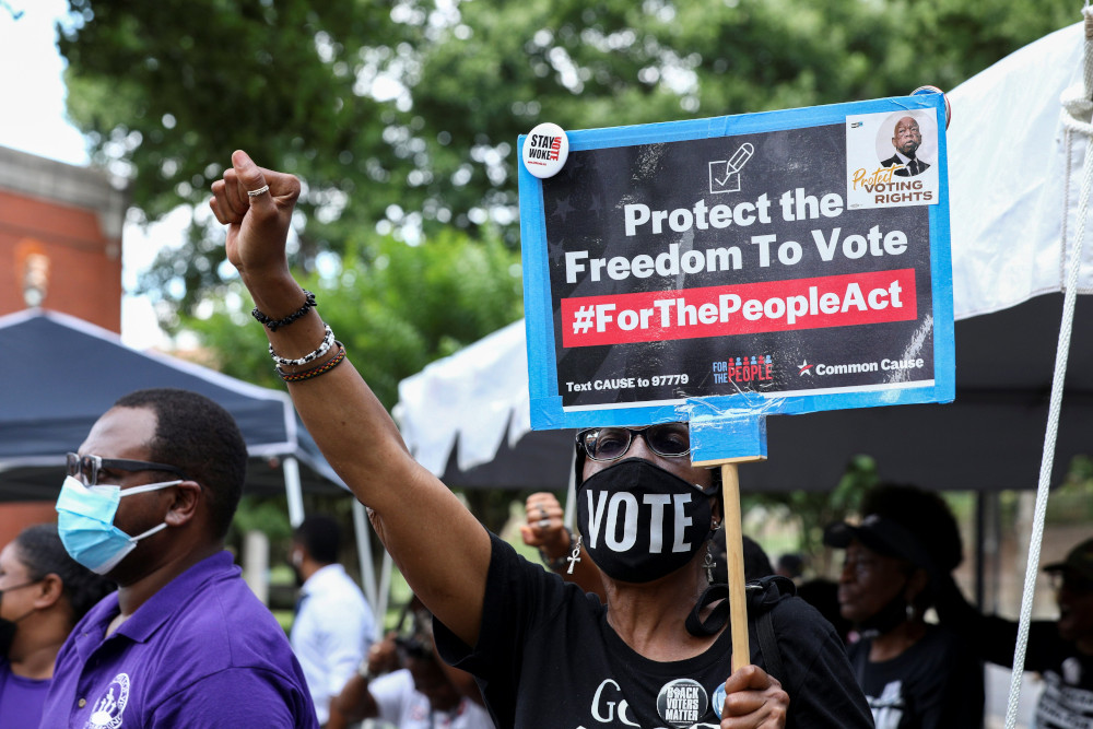 Today, she added, "we should all be worried that these measures that we are seeing taking place to limit the right to vote are also occurring at a time when people's faith in the integrity of the election system has been so tested," especially given former President Donald Trump's claims the 2020 election was rigged and that he won the popular vote in 2016.