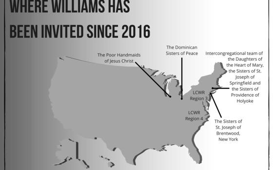 The Massachusetts-based congregation coordinated with the Sisters of Providence of Holyoke, Massachusetts, and the Sisters of St. Joseph of Springfield, Massachusetts, to bring Williams to Holyoke in February 2017 for a presentation. They invited every sister in New England to attend. The most severe snowstorm of the year kept attendance to about 80 sisters (more than 200 had registered), but Najimy said it was a "wonderful" event nonetheless.