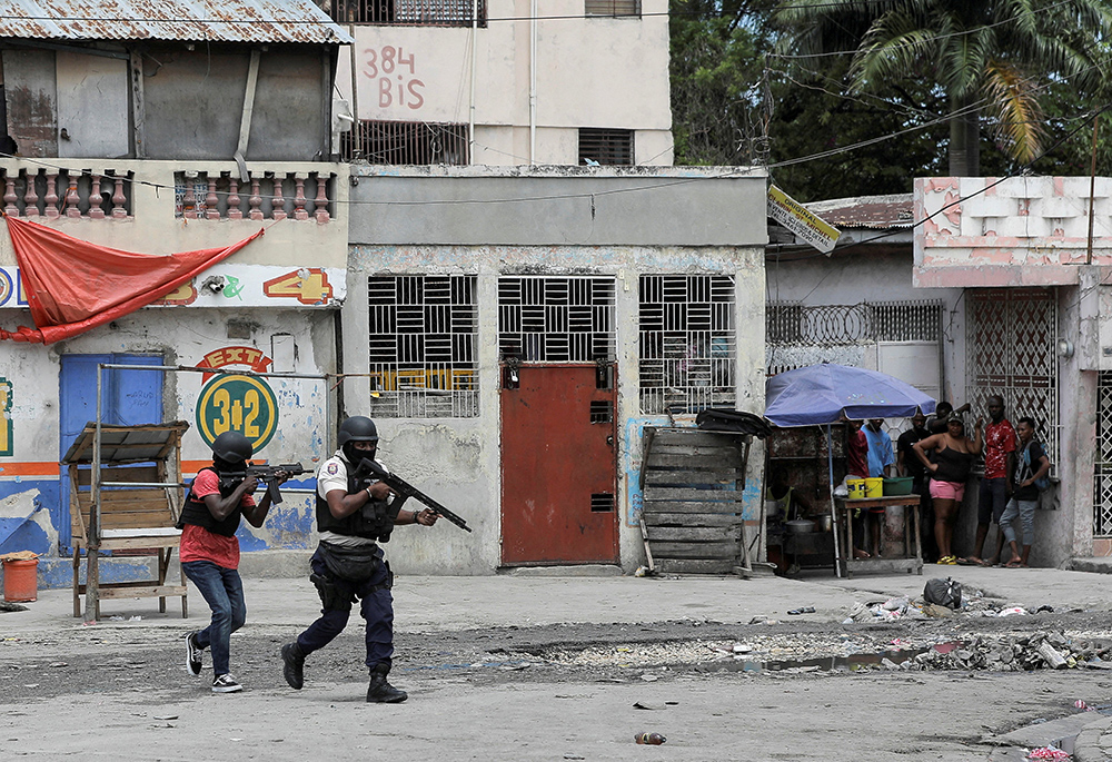 Police officers hold their position as they take part in an anti-gang operation amid gang violence March 3 in Port-au-Prince, Haiti. U.N. human rights expert William O'Neill, who was appointed to assess the situation in Haiti in April, told reporters June 28 that a "specialized international force" is needed to help fight gang violence ravaging the impoverished Caribbean nation. (OSV News/Reuters/Ralph Tedy Erol)