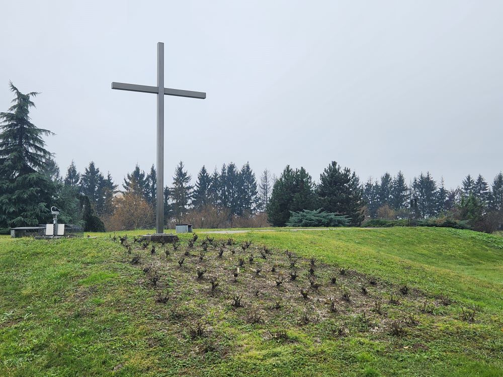 A garden and cross stand on the grounds of the St. Joseph's Home for Children, outside the Croatian capital of Zagreb. (GSR photo/Chris Herlinger)