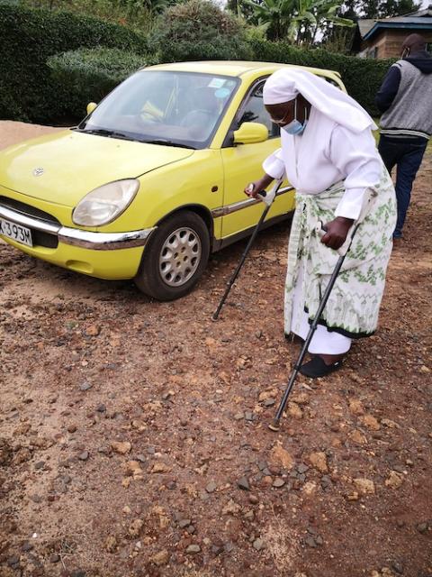 A member of the Nazareth Sisters of Wau, South Sudan, takes a walk at the Mother House in Nkabune, Kenya, where their Care Home for elderly and sick members currently is situated. (Courtesy of Nazareth Sisters of Wau)