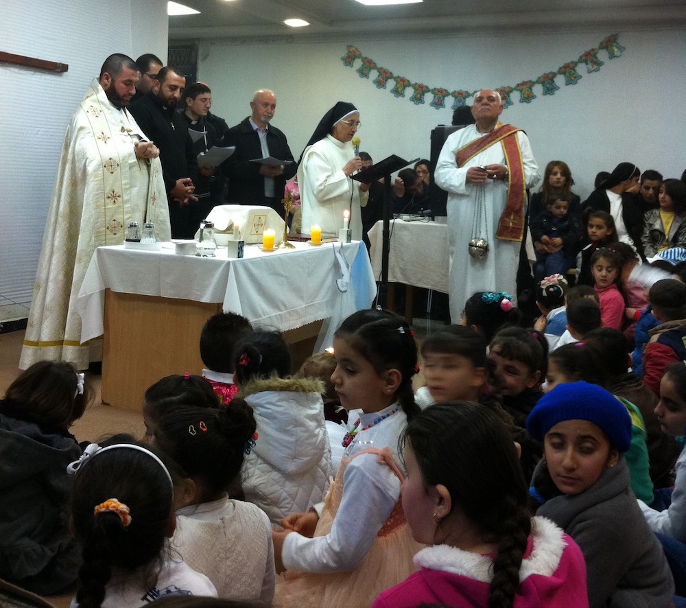 Iraqi Christians celebrate Epiphany Mass in abandoned office building. (Marcelline Koch)