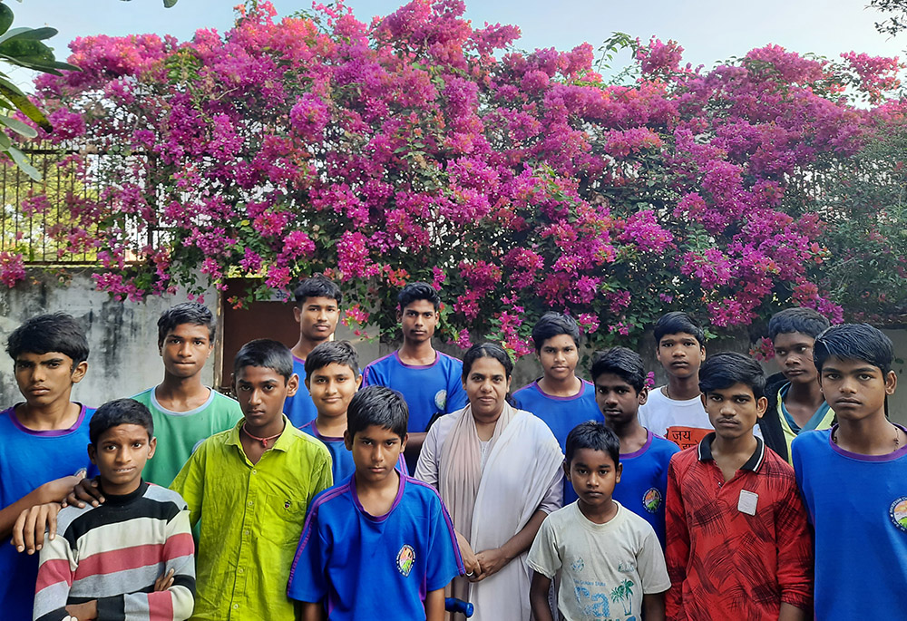 Members of the Daughters of Our Lady of the Garden convent are pictured with boys of Navjeevan, a care home for children rescued from railway platforms in Khandwa, central India. Sr. Ambika Pillai is third from the right in the back row. (GSR photo/Saji Thomas)