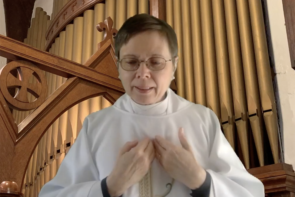 This is a screenshot from the Easter church service with St. Paul's Episcopal Church and St. Thomas' Church. The Rev. Norma Schmidt was the main preacher during this service. (Courtesy of Celina Kim Chapman)